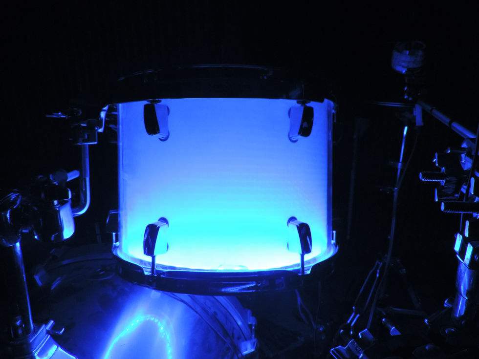 This project explores the design of a drum kit and a mechanism that makes sound become visible. The objective is to create a visual dialogue between the musician, the instrument, the scenario and the perception of the audience.